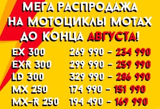 СНИЖЕНИЕ ЦЕН на мотоциклы MOTAX